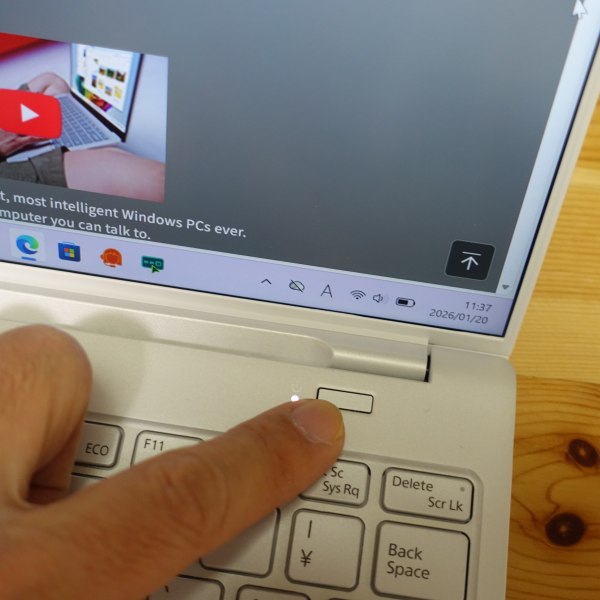 キーボード右上にある電源ボタンに指紋認証センサーを搭載。顔認証は非搭載です。