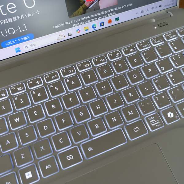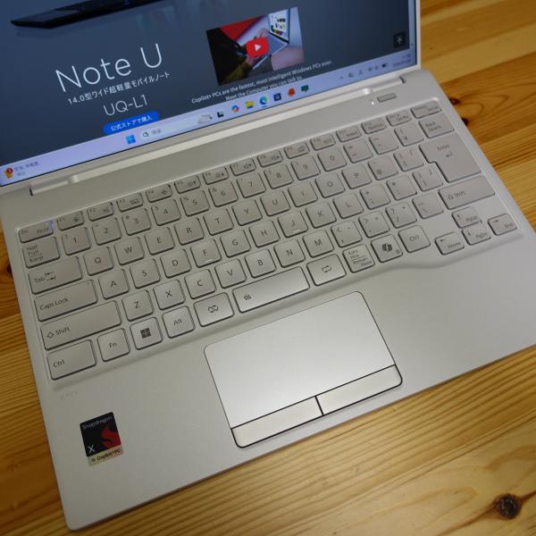 FMV UQ-L1は、14インチパネル搭載ノートPCとして非常に軽いモバイルPCです。Snapdragonプロセッサを搭載したCopilot+PC準拠モデル。