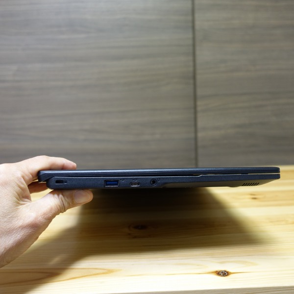 左側面部。USB Type-A、USB Type-C、マイク・ヘッドホンコンボ端子を配置。