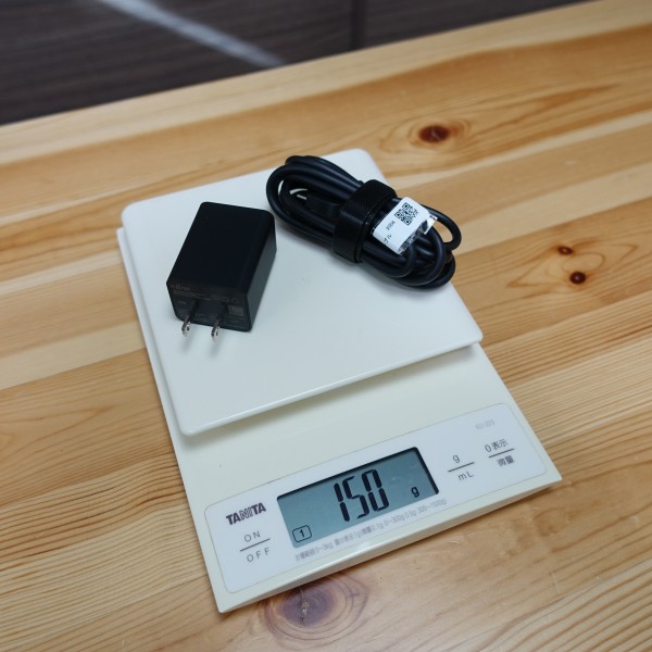 ACアダプタとケーブルの合計重量は150g(実測値)。