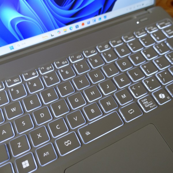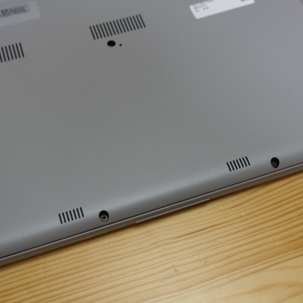 キーボード上部も少し温かいですが、パームレストに熱はほとんど感じませんでした。スリム・軽量PCですが、使った限りでは、冷却性はしっかりしていそう。