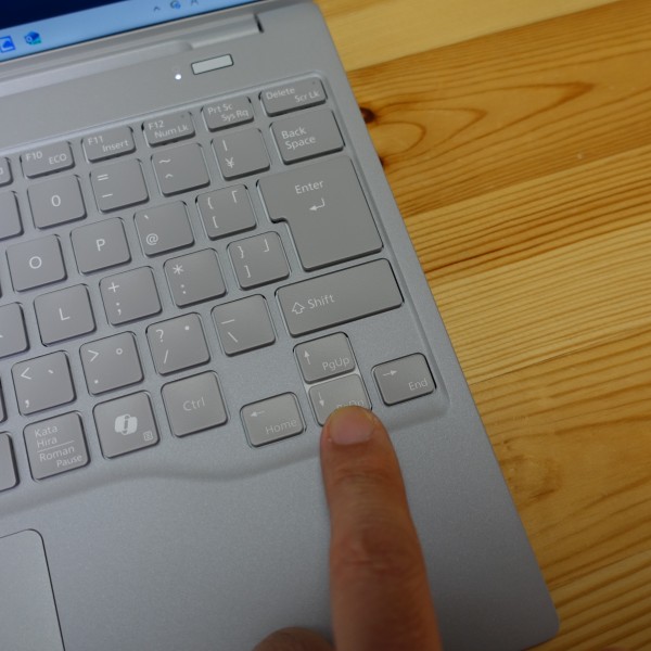 電源ボタンはキーボード右上に配置されているため、タイピング時に誤って押してしまうことは少ないと思います。