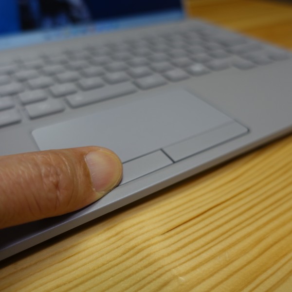 タッチパッドは少し小さめですが使いづらさは感じませんでした。表面がそれほどつるしておらず、適度に滑らせることができる感じで心地よく使えます。反応は良好です。