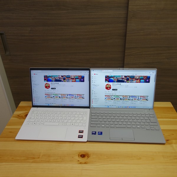 一回り小さな13.3インチパネル搭載ノートPCと比べても、ほとんど大きさに差がない感じですね(上の画像の左:13.3インチPC (縦横比16:10)/右:レビュー機(14インチ/縦横比16:10))。