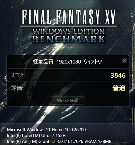 重い負荷のかかるFF15ベンチマークの結果は「軽量品質」と「標準品質」で「普通」、「高品質」で「重い」。