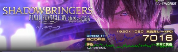 中程度の負荷のかかる「FF14 漆黒の反逆者」ベンチマークを実行したところ、高品質で「非常に快適」、最高品質で「とても快適」。
