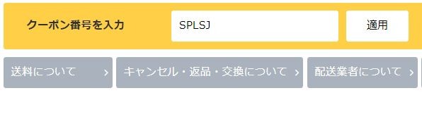 「クーポンク番号を入力」欄に該当製品のシークレットクーポンコード(SPLSJ)を入力します(クーポンコードは全モデルで同じです)。