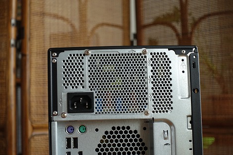 背面部の通気孔は大きめにとられており、排熱に配慮した設計になっています。