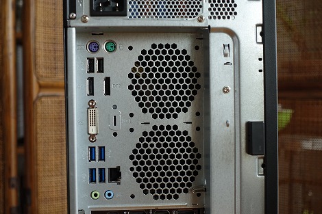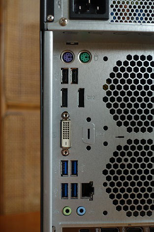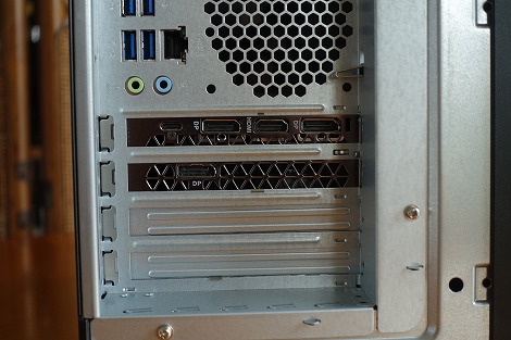 外部出力端子は、背面部の下部に配置されているグラフィックカードの端子を利用します。