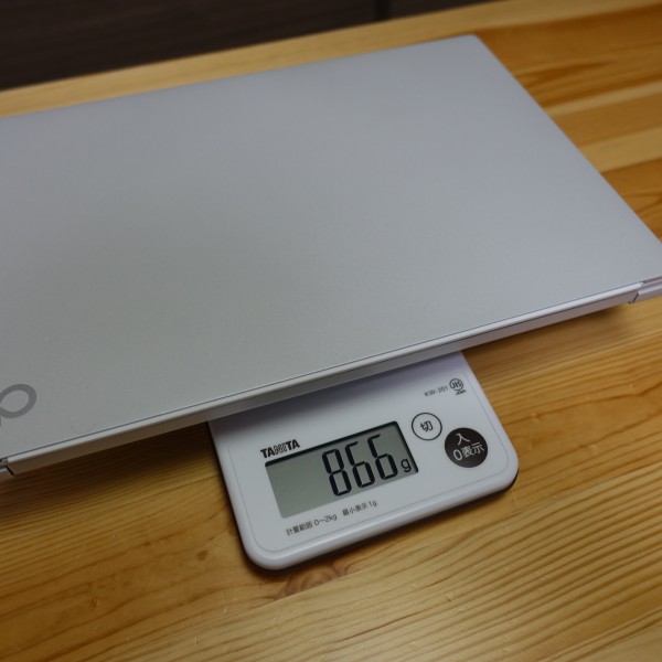 シルバーホワイトのレビュー機の重量は866g(実測値)。