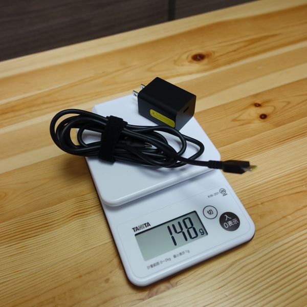 ACアダプタと電源ケーブルを合わせた重量は148g。非常に軽量です。
