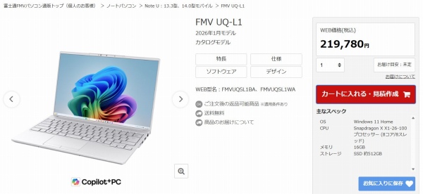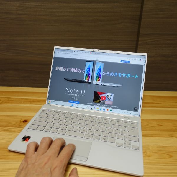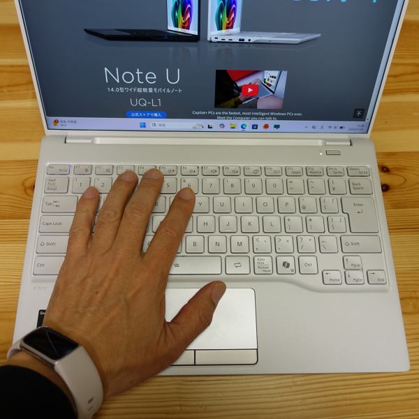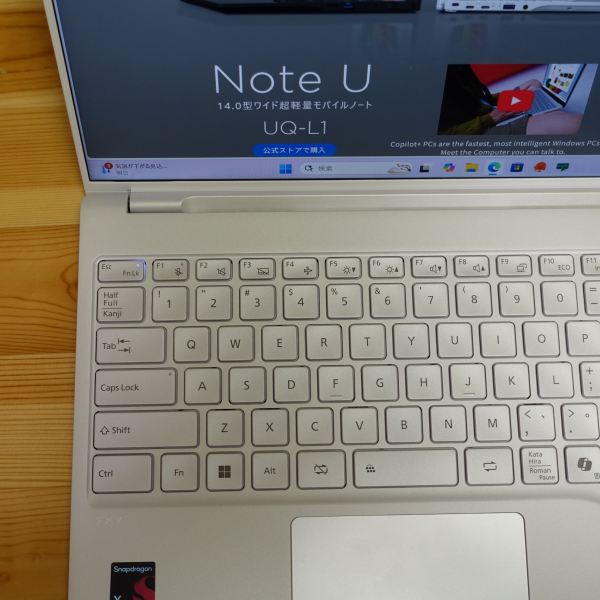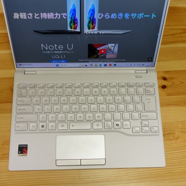 FMV UQ-L1は、14インチパネル搭載ノートPCとして非常に軽いモバイルPCです。Snapdragonプロセッサを搭載したCopilot+PC準拠モデル。