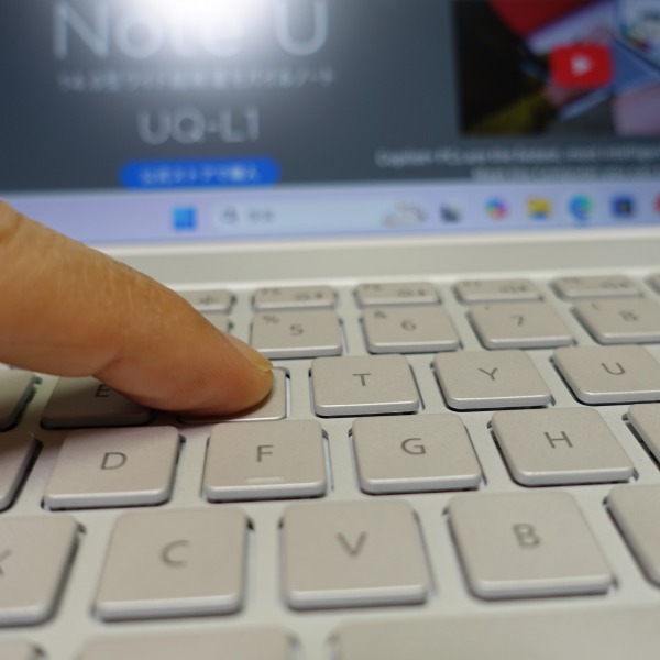 キーストローク(キーを押し込む深さ)は約1.5mm。モバイルPCとしては一般的な深さだと思います。