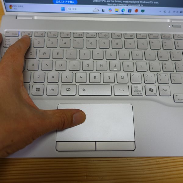 タッチパッドはちょっと小さめですが、あまり使いづらさは感じませんでした。表面はすべすべしていて反応は良好です。