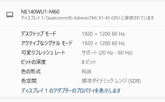ディスプレイの最大解像度は1920×1200ドット。