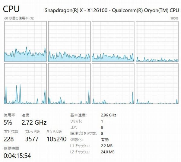 あとSnapdragonプロセッサは電力効率が非常に高く、長いバッテリ駆動時間を確保できるよう設計されているのでモバイルPCとの相性がいいと思います。
