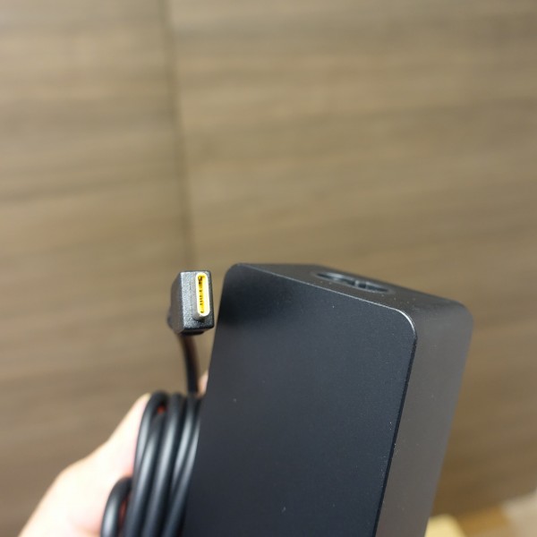 Type-C端子経由で27インチモニタに接続してみました。 対応するモニタに接続すれば、外部映像出力と同時に充電も実行できるので大変便利です。