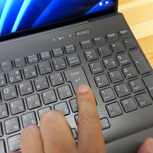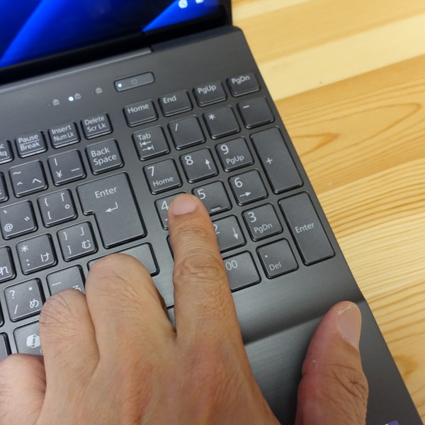 キーボードはテンキーを搭載。テンキーは他のキーと同等の大きさを確保しているため押しやすいと思います。