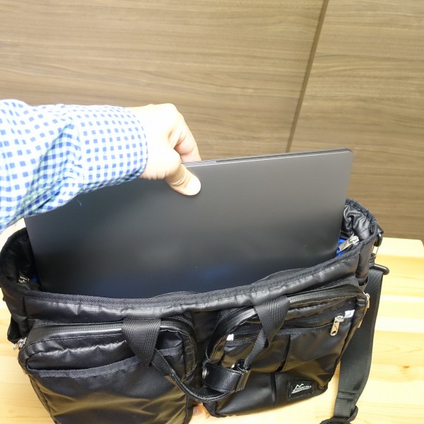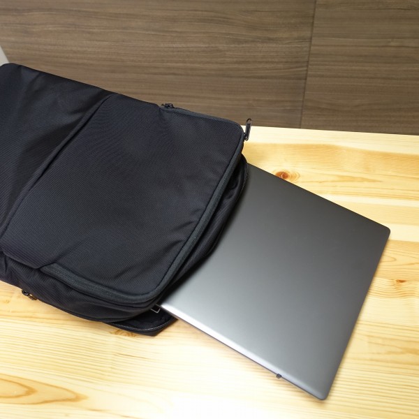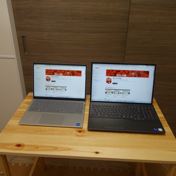 14インチノートPCと比較するとこんな感じ(上の画像の右がレビュー機)。