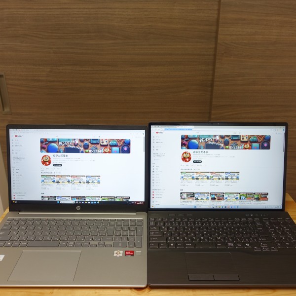 先代のWA3シリーズは15.6インチパネルを搭載していましたが、 本モデルは縦方向にパネルが大きくなっています(上の画像の左が15.6インチノート、右がレビュー機)。