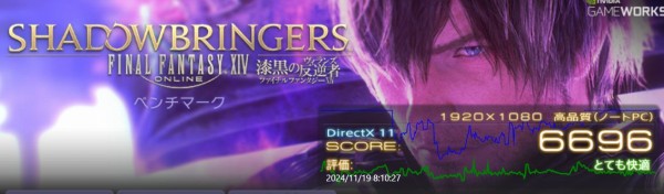 負荷が中程度のベンチマーク「ファイナルファンタジー14 漆黒の反逆者」の結果は、高品質で「とても快適」、最高品質で「快適」