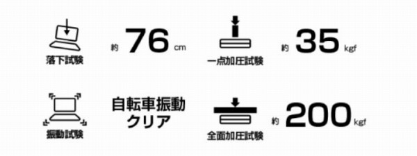 複数の堅牢性試験をクリアしているので安心して持ち運べます。