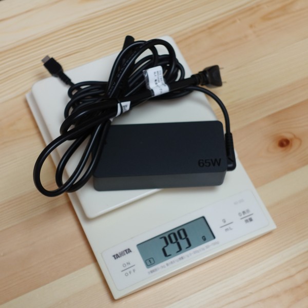 ACアダプタと電源ケーブルを合わせた重量は299gです。