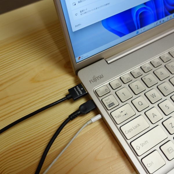 本体と合わせた重量は1.305kg。これぐらの重さなら、本体と一緒にACアダプタとケーブルを持ち歩いても、 大きな負担にならないと思います。