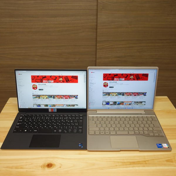 縦横比16:913.3インチパネル搭載ノートPCを並べてみました。上の画像の右がレビュー機(縦横比16:10、13.3インチパネル搭載)です。