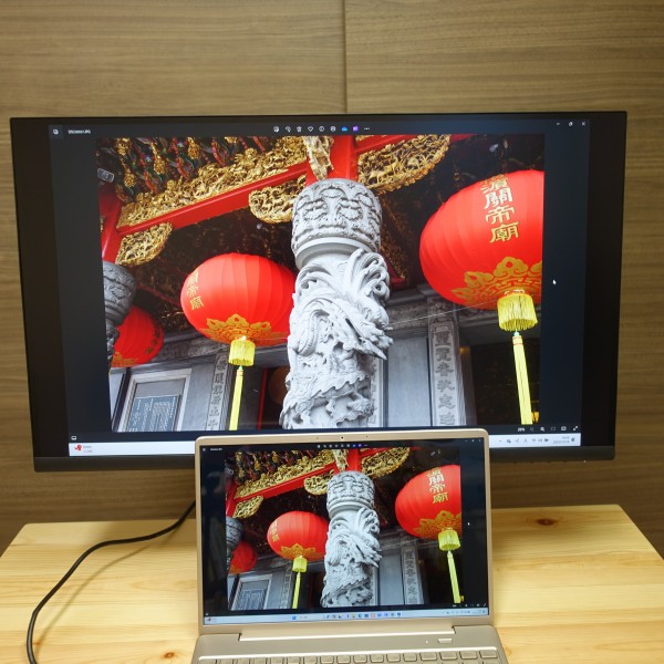 色域が狭いと暖色系が黄色っぽく表現されるのですが、 本モデルではそうした現象は発生しません。IPSパネル搭載の27インチ液晶モニタに同じ画像を映し出してみましたが、見え方に大きな差は感じません。