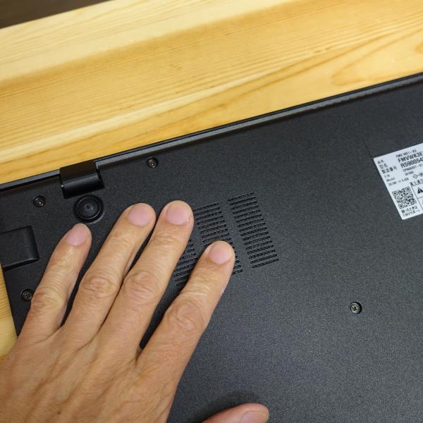 FF15ベンチマーク実行直後、底面部の通気孔付近を触るとちょっと温かく感じましたが熱くはなかったです。