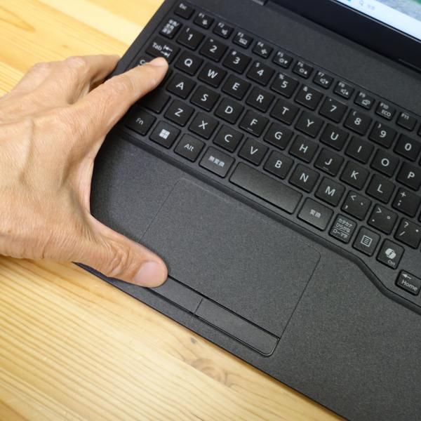 タッチパッドは、最近のモデルとしては珍しくクリックボタンが物理的に別になったタイプを採用。