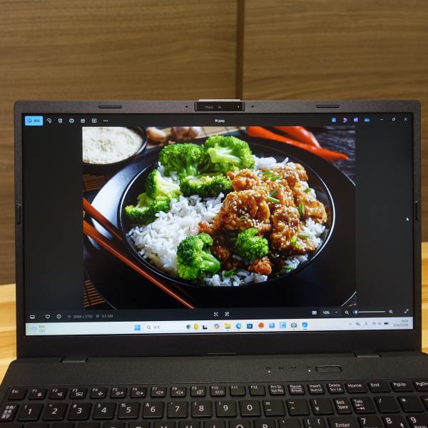 パネルの色域はちょっと狭め。色域の広いsRGB100%のパネルを搭載した13インチノートPCに同じ画像を映し出したところ(上の画像の左:sRGB100%の13インチノートPC/右:レビュー機(16インチ))。