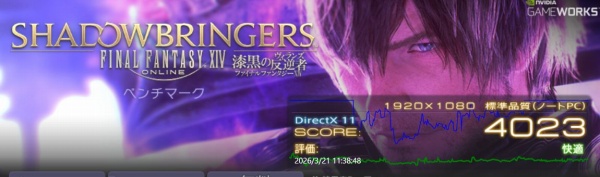 負荷が中程度のベンチマーク「ファイナルファンタジー14 漆黒の反逆者」の結果は、高品質で「快適」、最高品質で「やや快適」。