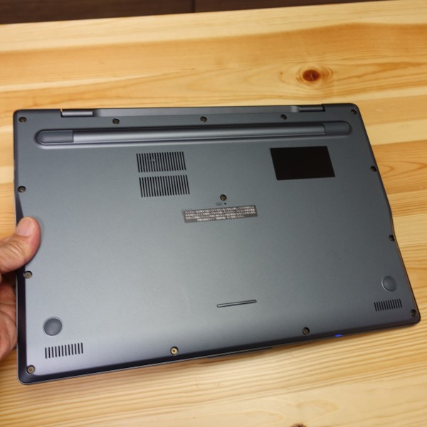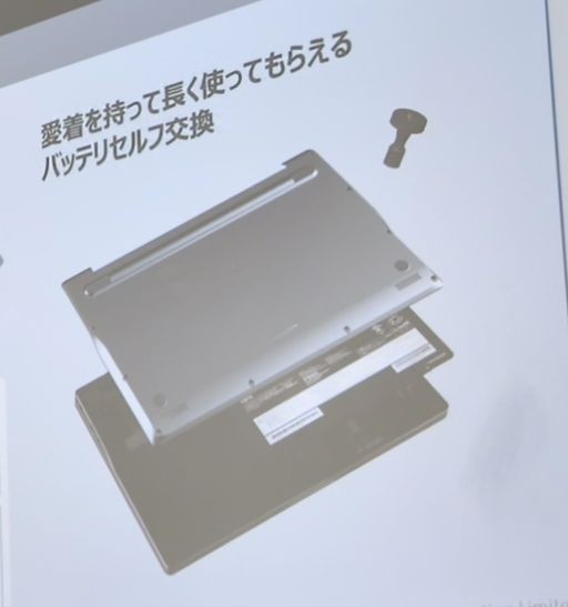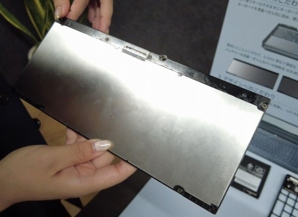 イベントに参加したときに担当者に聞いたところ、天板部/底面部/キーボードの周囲には、軽くて強度のあるアルニウムを採用。