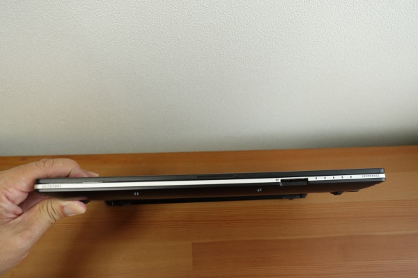 横から見たところ。キーボード操作がしやすいよう、少し傾斜しているのがわかります。