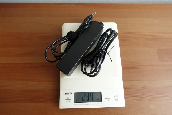 電源ケーブルとACアダプタを合わせた重量は約237gと軽量。
