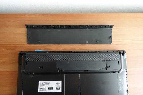 底面部。バッテリ部分はカバーで覆われており、すっきりとしたデザインになっています。