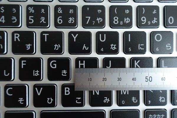 キーピッチも19mmと十分な幅を確保。フルサイズのキーボードを搭載しているため、窮屈な感じはまったくありません。