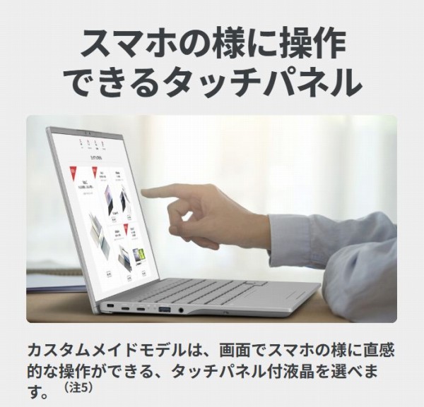 スペックを絞っているところがある分、価格が安めに設定されている印象です。これだけ軽くて端子類も充実している、タッチパネルも選択できる超軽量PCがこの価格で手に入るのは結構魅力があると思いますね。