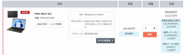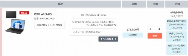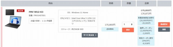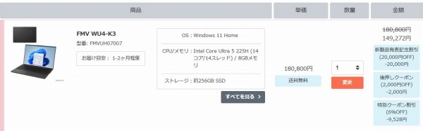 富士通FMV WU5-K3・WU4-K3・WU7-K3・WU2-K3・WU3-K3にシークレットクーポンを適用すれば、通常価格よりも割引されるお得なキャンペーン実施中です(今回のクーポンは当サイト向け特別クーポンです。クーポンの割引率が変更になったり、クーポンの発行自体が終了する可能性もあるのでご注意ください。また価格コムやポイントサイトでは基本的に活用できないクーポンコードです)。