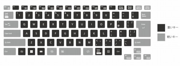 キーの重さは指の力に合わせて2段階に調整されており、タイピングしやすさにこだわっています。