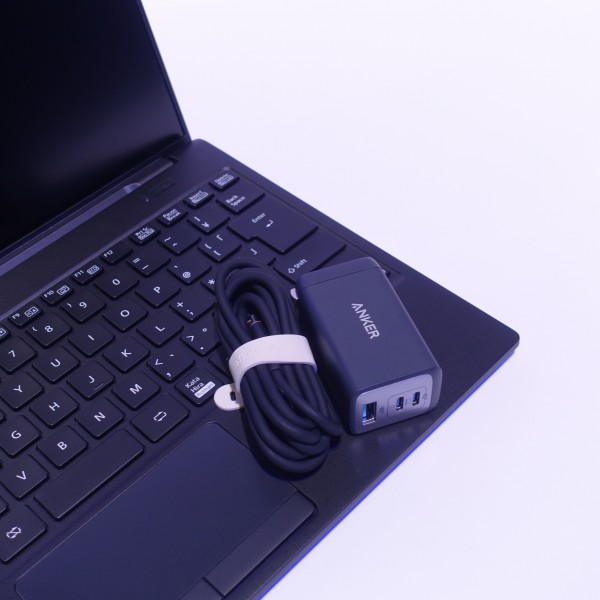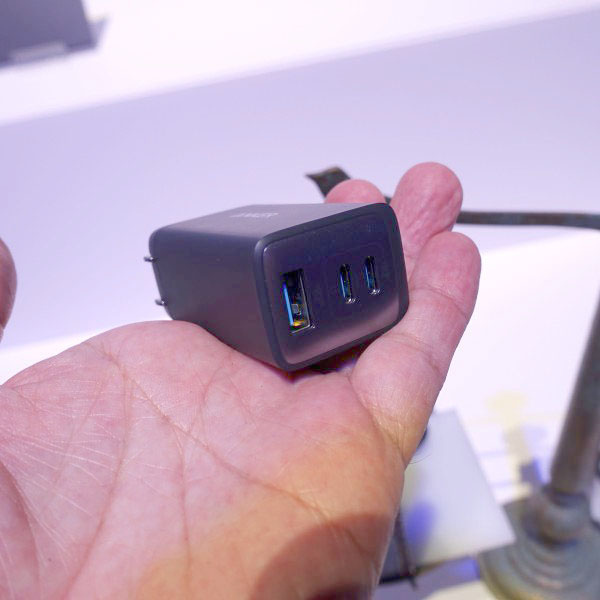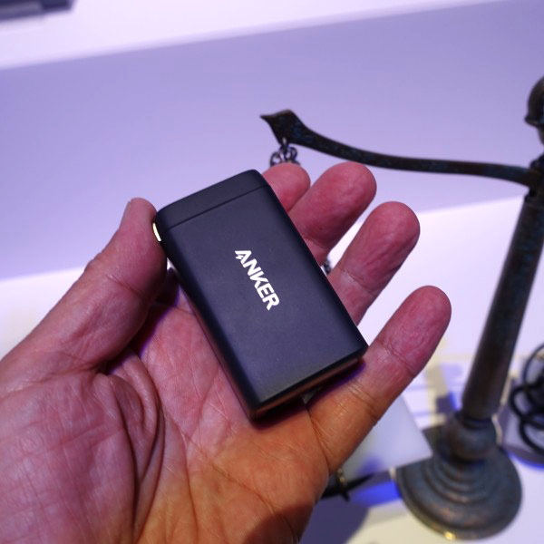 オプションでAnker USB急速充電器(Anker PowerPort lll 3-Port 65W Pod/約130g)とUSB-Cケーブル(Anker PowerLine lll Flow USB-C & USB-C ケーブル 1.8m/約64g)を選べるようになりました(写真はAnkerの発表会に招待されたときに撮影)。
