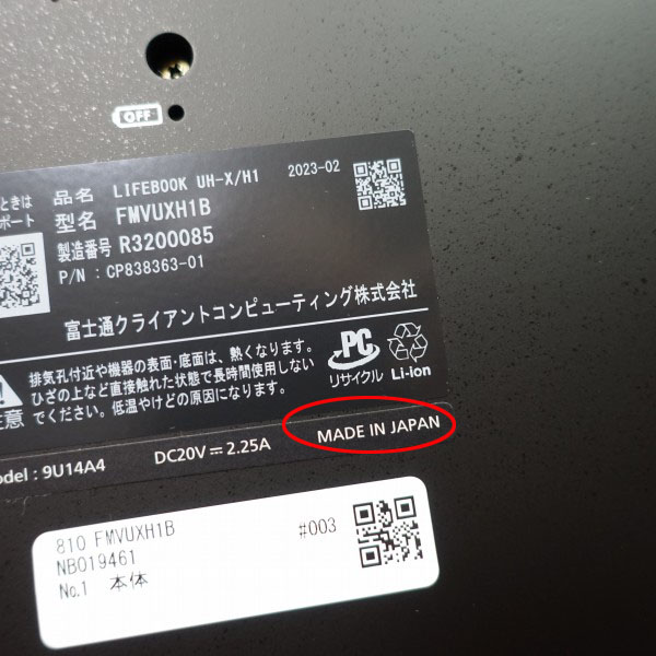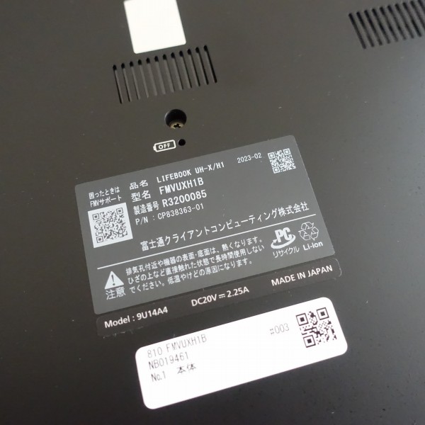 LIFEBOOK WU-X/H1の各パーツをチェックします。
