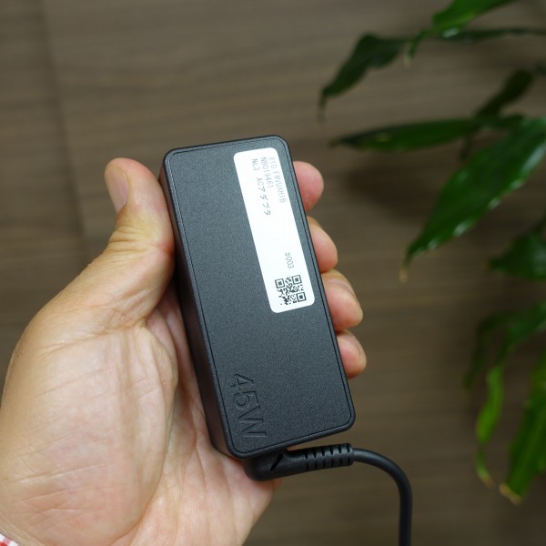 モバイルPCに同梱されるだけに、ACアダプタは片手で握れるコンパクトさを実現。