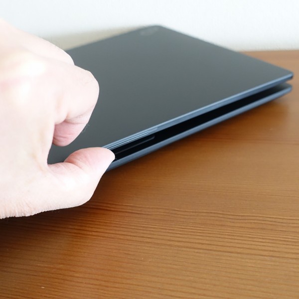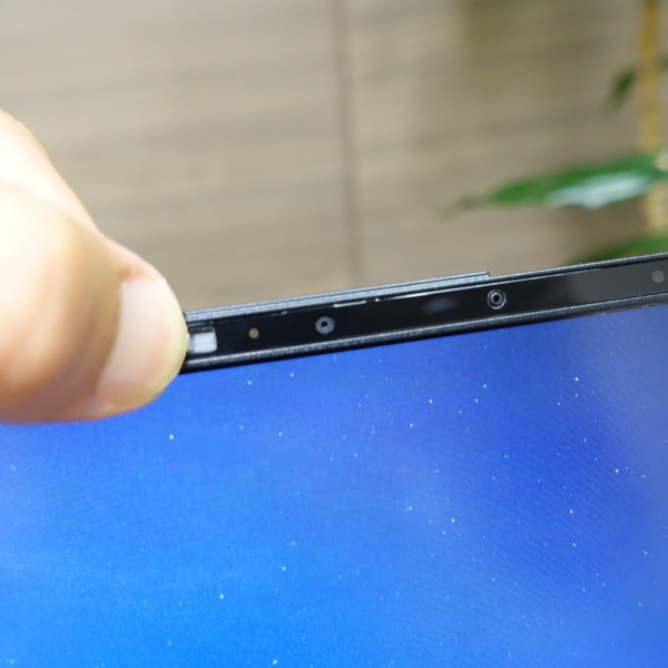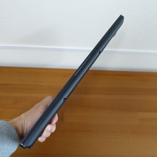 軽量化を図るため、パネルの外枠(ベゼル)は極限まで細くなっています。これで大丈夫かな?というぐらい細いです。左右だけでなく上下のベゼルも極細です。