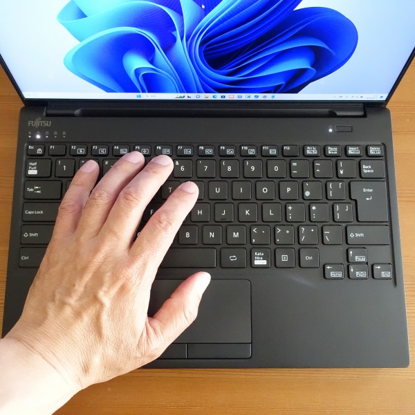 キーストローク(キーを押し込む深さ)は約1.5mm。スリムタイプのノートPCの場合、1.3mmのキーストロークしかないモデルもありますが、LIFEBOOK WU-X/H1では、スリムノートPCとしては深めのキーストロークを確保。
