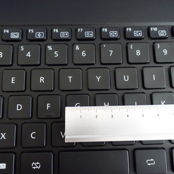 デスクトップに同梱されるフルサイズのキーボードと同程度のキーピッチを確保しています。なので窮屈な感じはしませんでした。