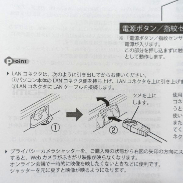 | 端子類 | USB3.2(Gen2)Type-C(USB Power Delivery対応、DisplayPort Alt Mode対応)×2(左側面×2)、 USB3.2(Gen1) Type-A×2(左側面×1(電源オフUSB充電機能付)、右側面×1)、HDMI、LAN、microSDカードリーダー |