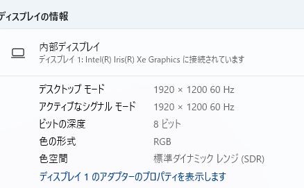 | ディスプレイ | 14.0/縦横比16:10 (ノングレア液晶 / 1920×1200ドット/ 1677万色 ) |